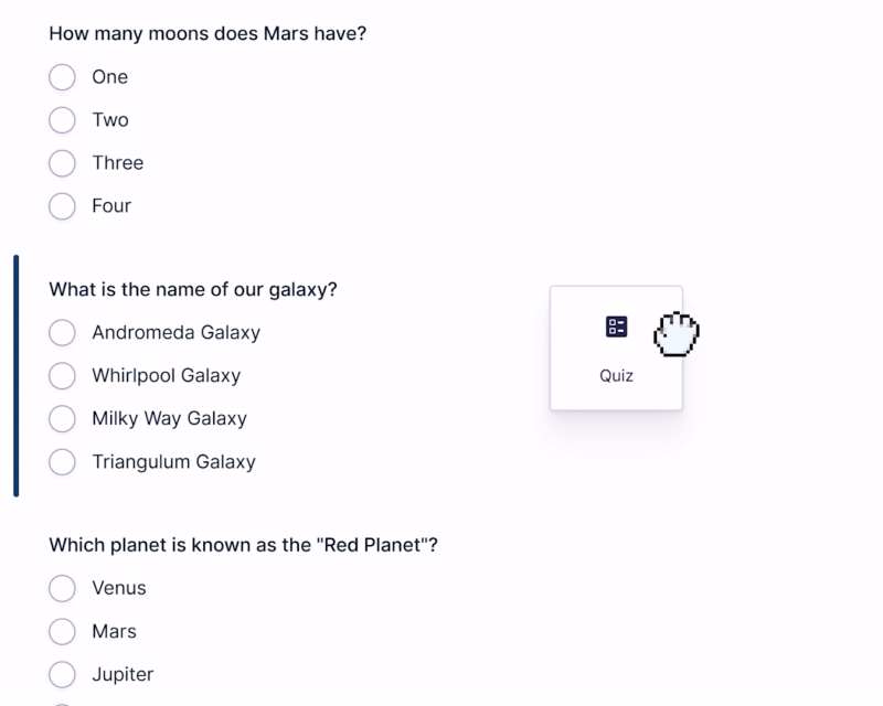 Use quizzes to qualify leads, assess learning, segment audiences, or create engaging content – one add-on, multiple applications.