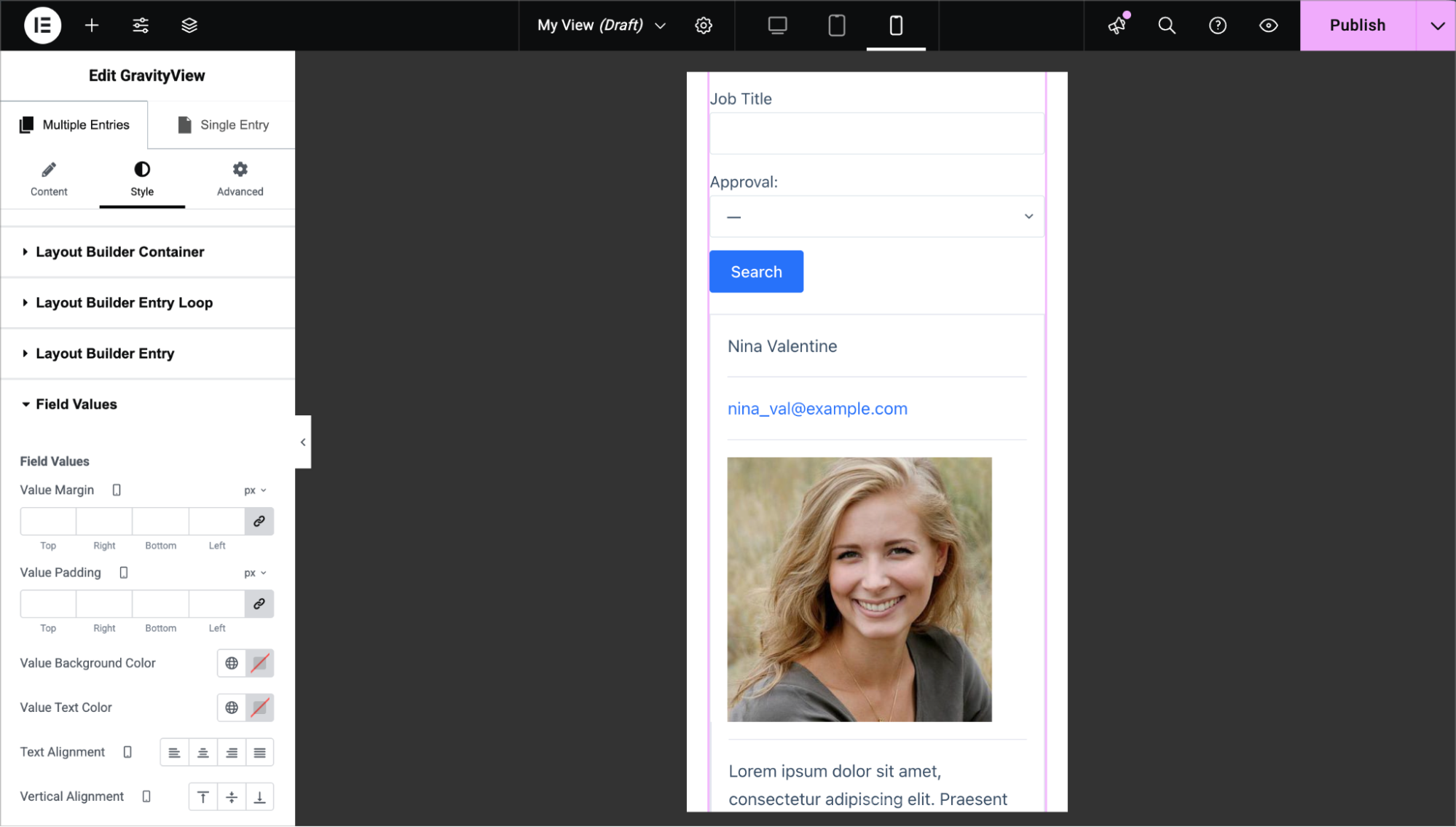 Your form data displays should look great on desktop, tablet, and mobile. Elementor’s responsive controls make this simple.