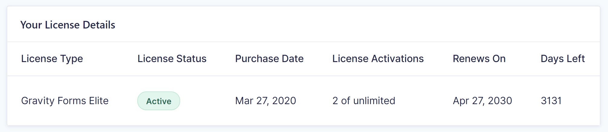 This new UI is aimed to keep customers up-to-date with the status of their licenses and save you logging into your Gravity Forms account dashboard to access the information you need.
