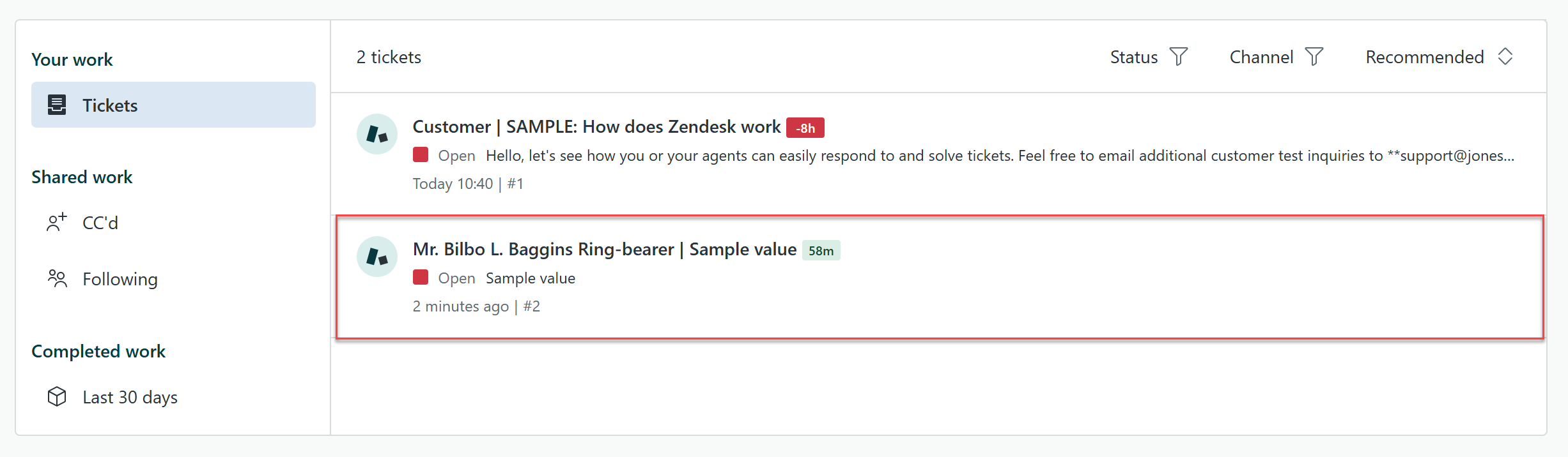 Head over to your Zendesk dashboard. If everything worked as expected, you should see a ticket with the sample data there.
