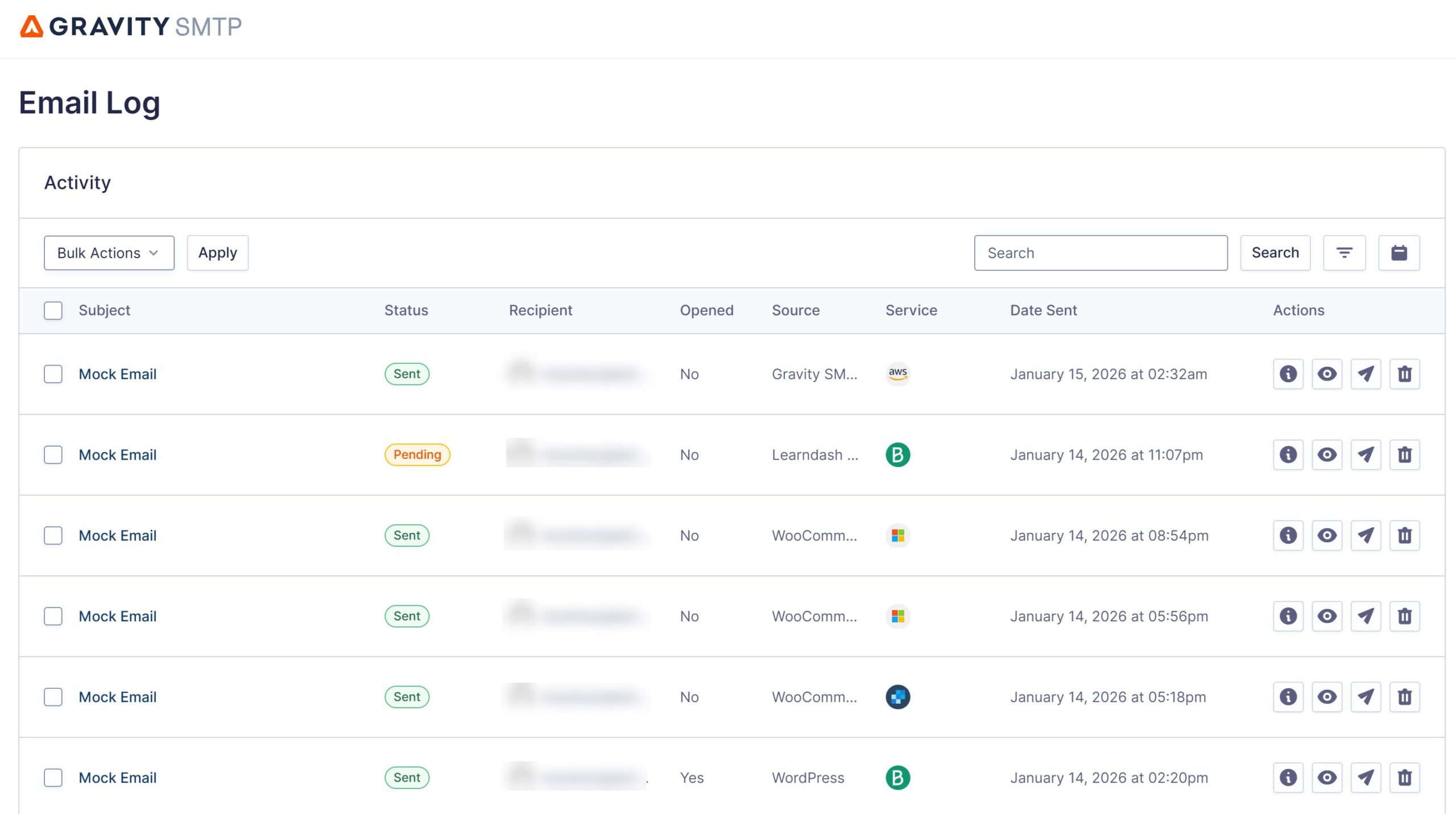 On the main log page, you can see a list of all of the emails that your site has sent.
