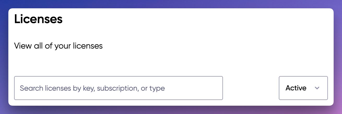 On the Licenses screen, you can search by license key, subscription number, or license type. For our developer and agency customers who manage multiple licenses, this will make finding the right one a breeze!