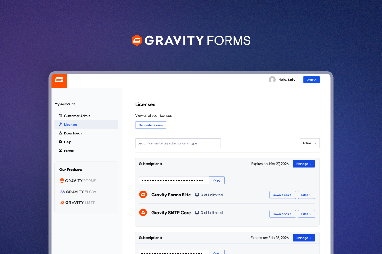With a streamlined interface, cleaner UI, and faster performance running from our new gravity.com domain, the next-generation Gravity Forms Account Dashboard is almost ready to launch!