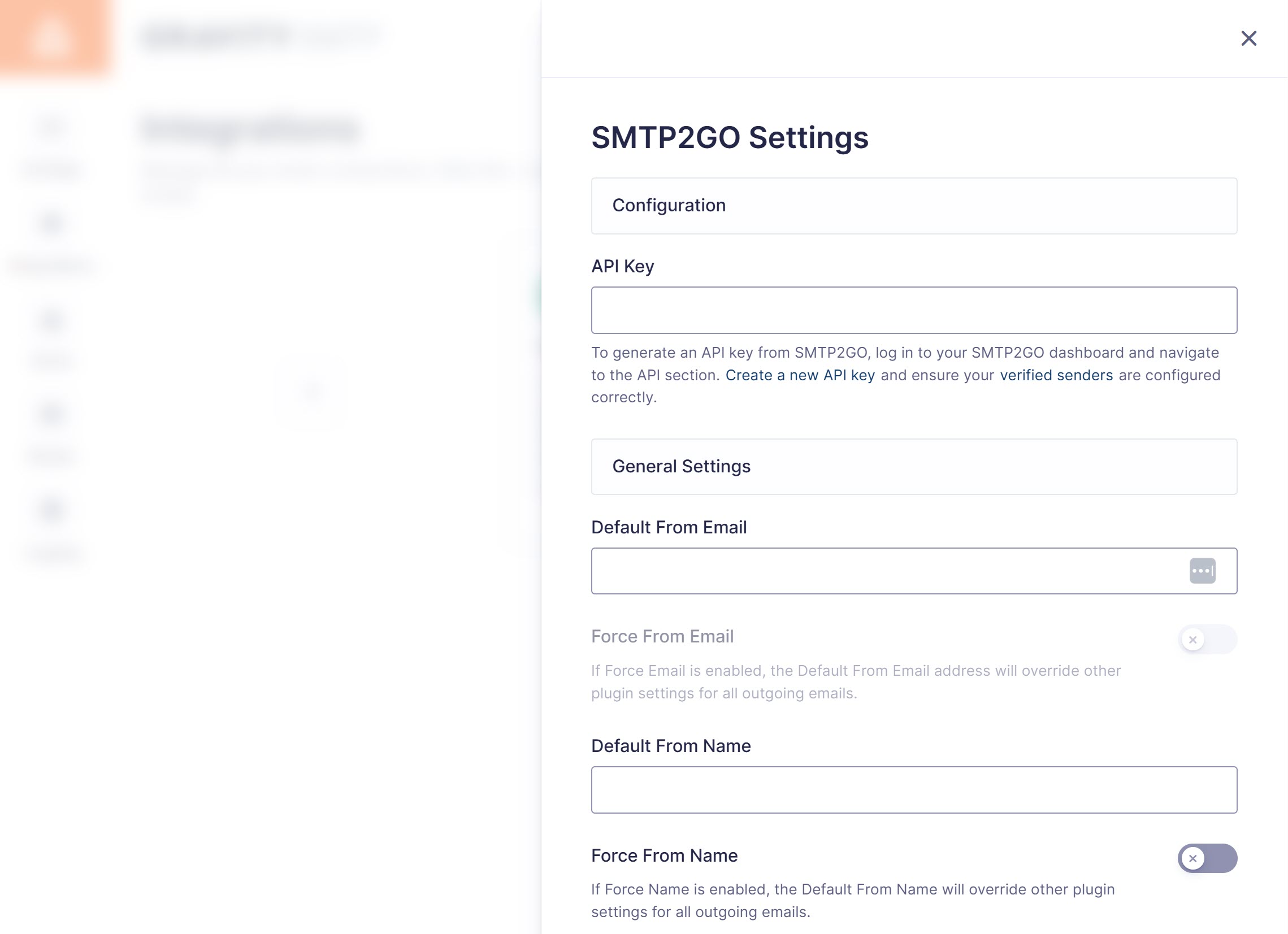 First, paste your SMTP2Go API key into the API Key box.