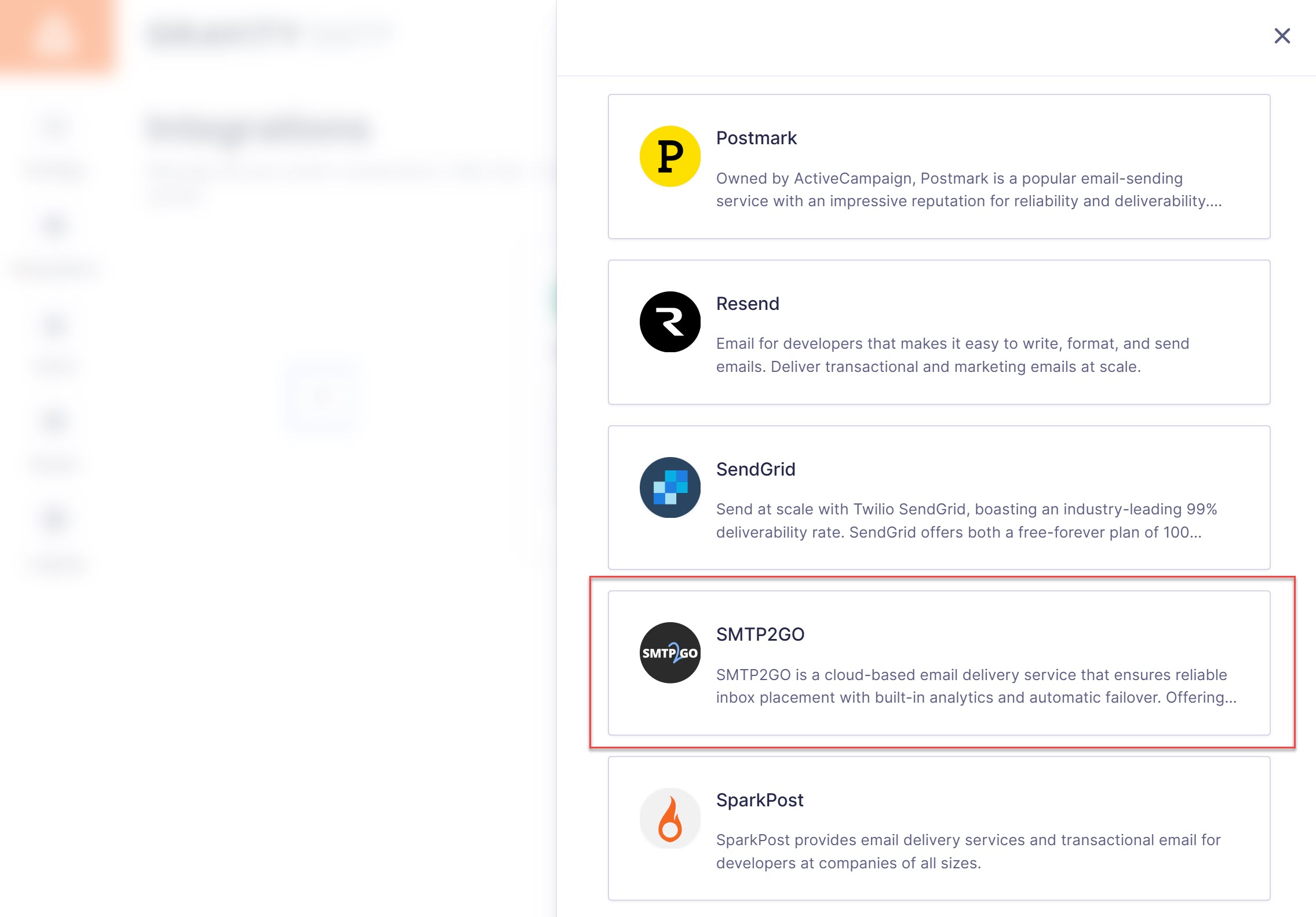 To do this, click the three dots icon next to SMTP2Go in the Integrations area. Then, choose Set As Primary from the drop-down.