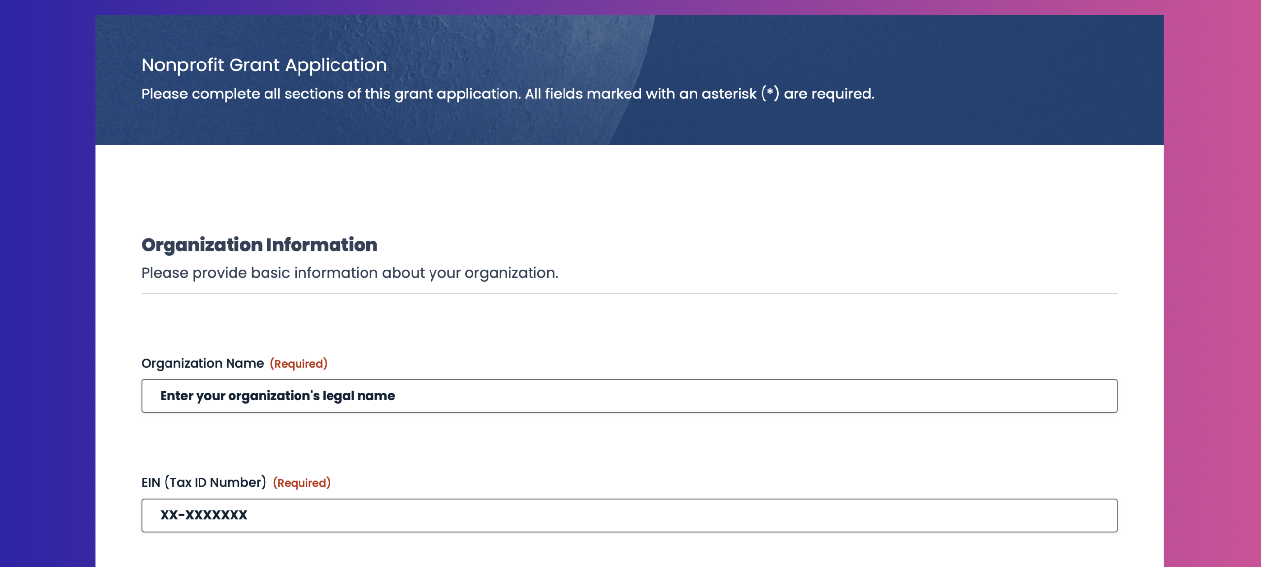 Grant applications are often long, complex, and high‑stakes. Multi‑page forms with save‑and‑continue functionality allow applicants to complete submissions over time, upload required documents, and avoid losing progress.