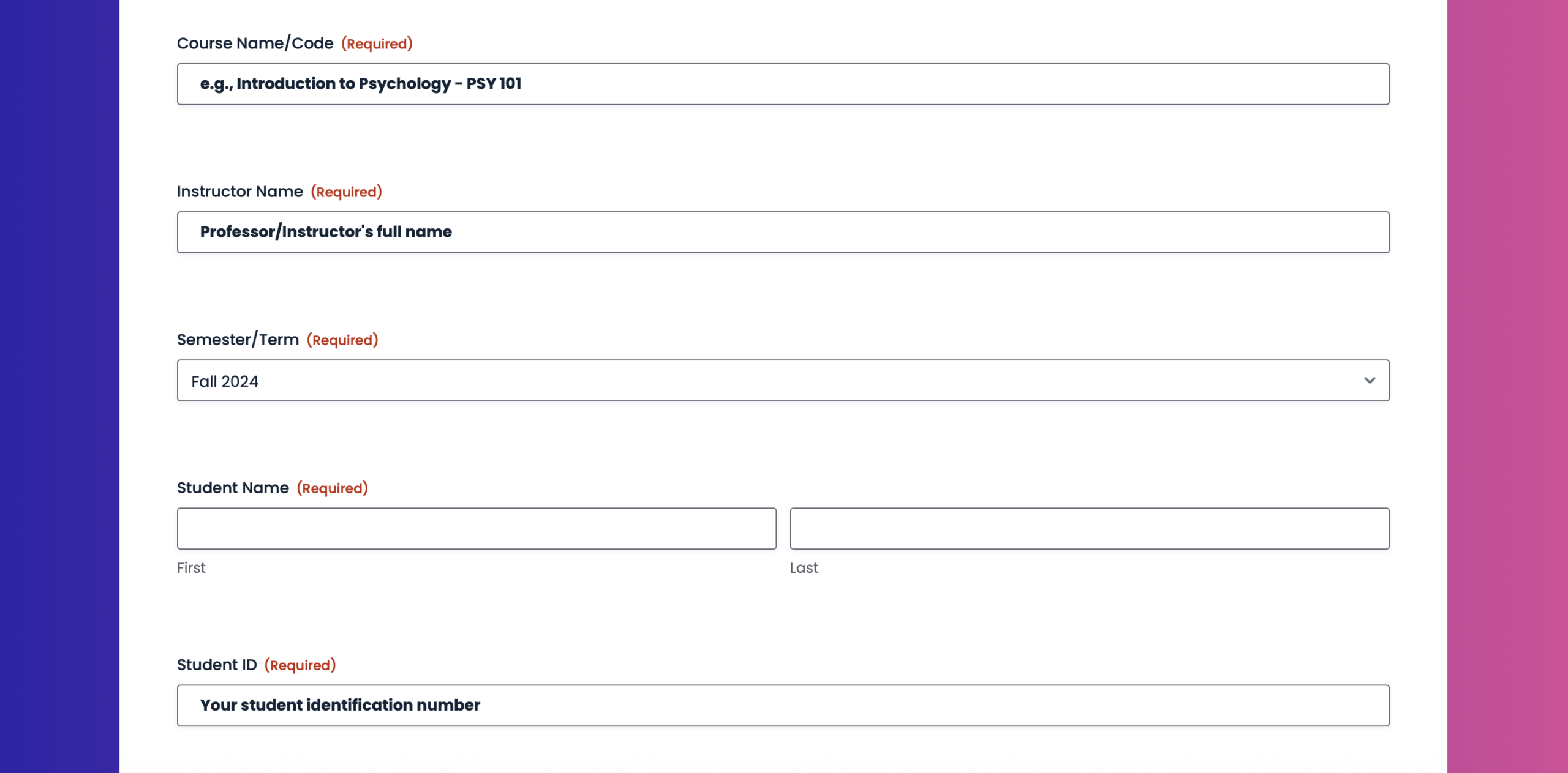 • Conditional logic ensures students only see relevant fields.