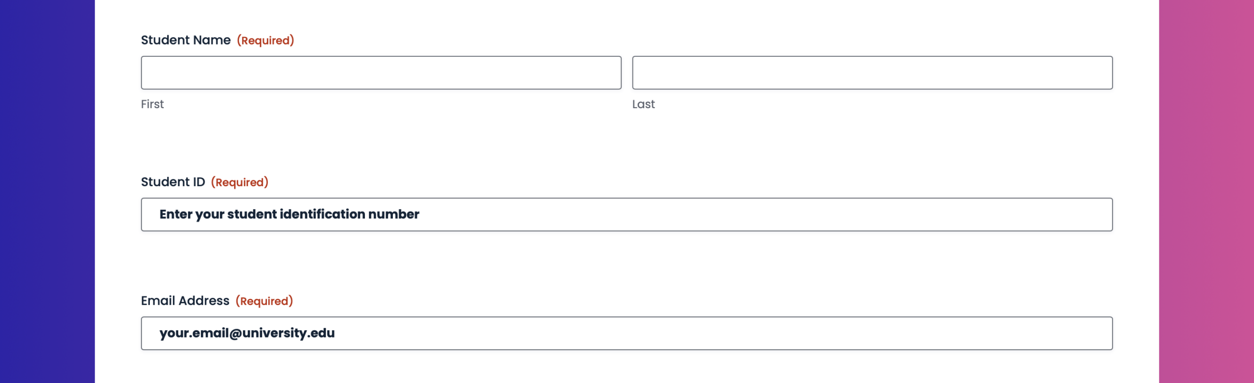 Student enrollment form