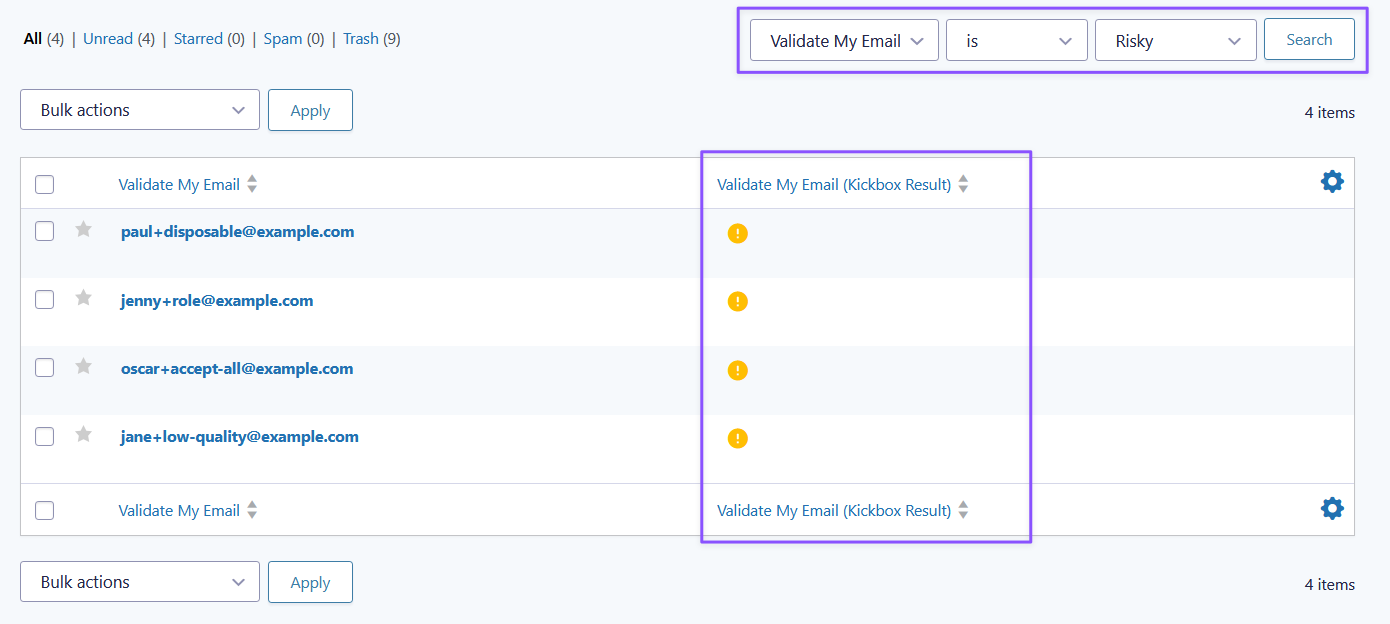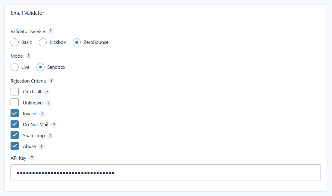 If you’re looking to up your defenses and your email marketing game, Email Validator offers tight integrations with two email verification services: Kickbox and ZeroBounce. These services check each email to confirm they actually exist and provide additional details, like if the email is from an undesirable domain or if it’s a (spam) trap.
