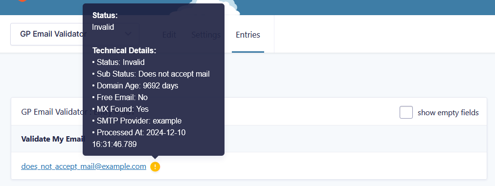 Email Validator’s Basic Validator keeps email lists squeaky clean using local validation. It stops invalid emails in their tracks the moment Email Validator is activated.