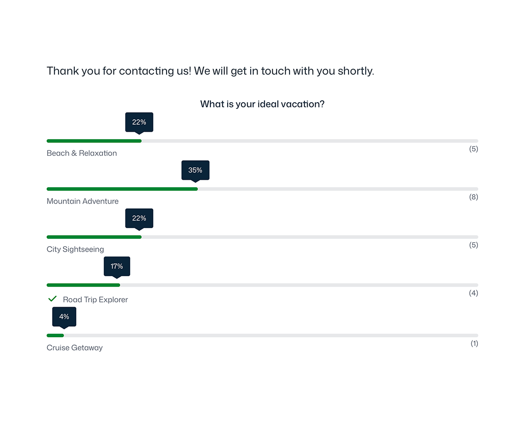 Gravity Forms supports multiple poll formats including Yes/No questions, single-choice polls, and multiple-selection polls, allowing you to choose the format that best fits your question.