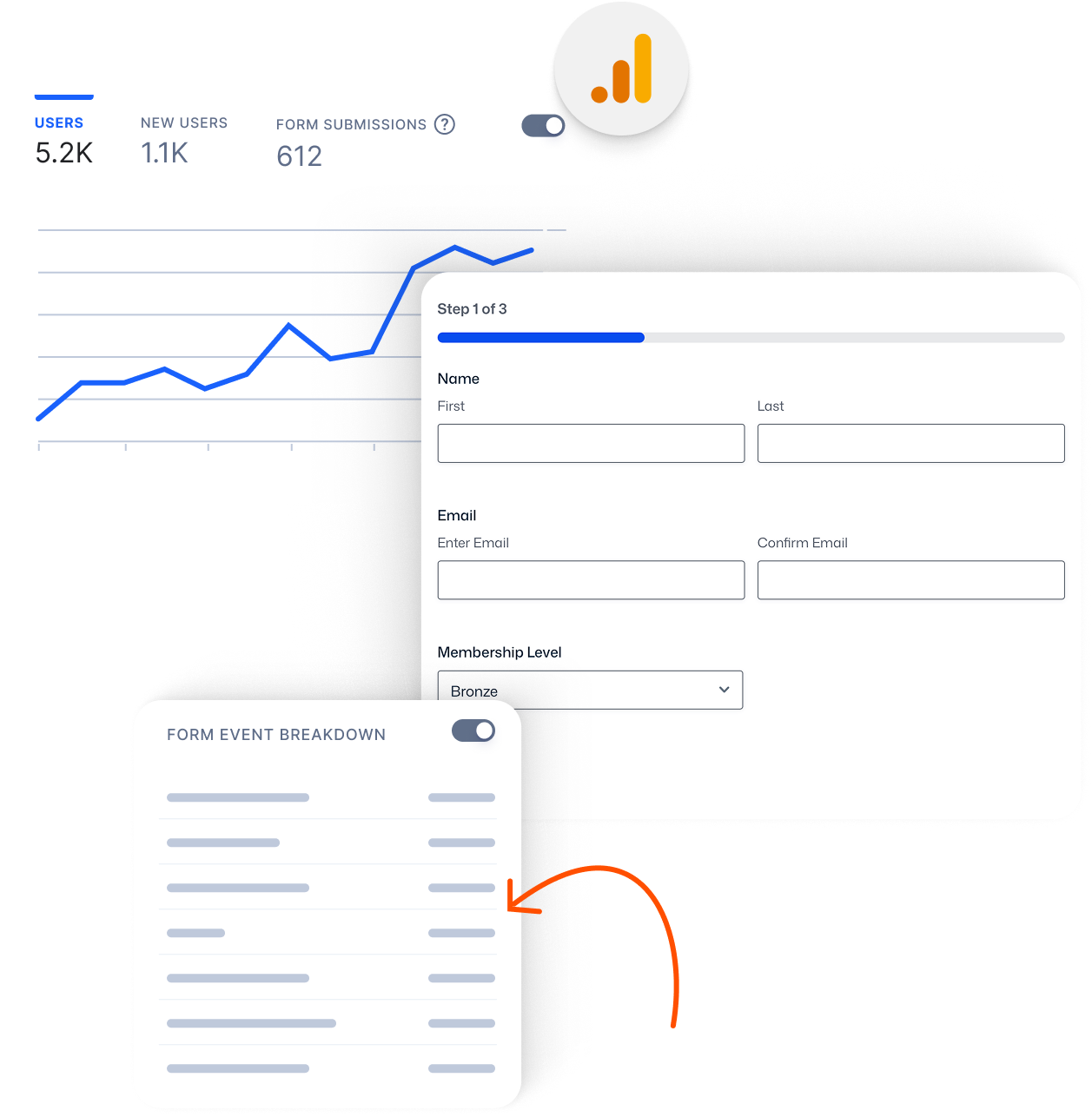 Track newsletter signups, payment completions, subscriptions, survey submissions, and more – all in your Google Analytics account.
