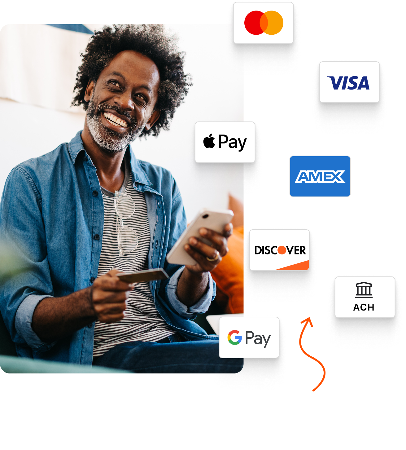 Credit cards, Apple Pay, Google Pay, ACH debit, Stripe Link, and regional payment options – give customers the flexibility they want.